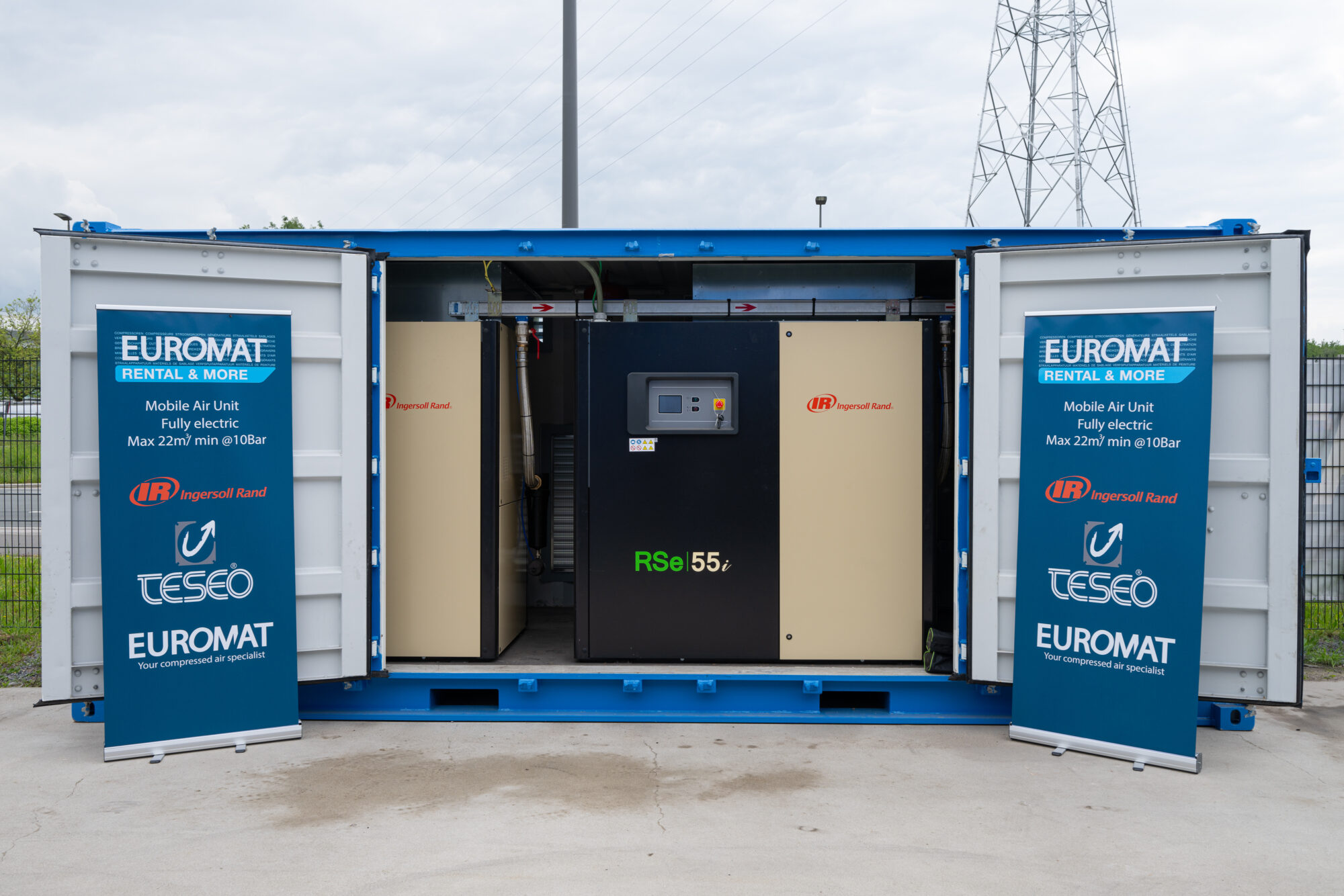 Chez Euromat, nous disposons de 3 types de compresseurs, à savoir : les compresseurs mobiles à moteur diesel de Doosan, les compresseurs électriques stationnaires d’Ingersoll-Rand et les compresseurs électriques mobiles d’Atlas Copco.