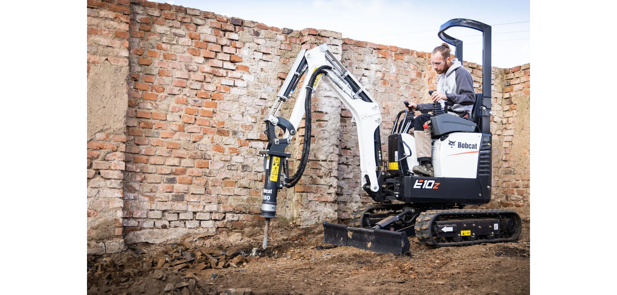 Location d’une mini-pelle Bobcat E10Z ? 1 tonne, 1,82 m de profondeur de fouille et seulement 710 mm de large. Idéale pour creuser dans les espaces restreints, elle est fournie avec 3 godets et comprend 8 heures de fonctionnement par jour.