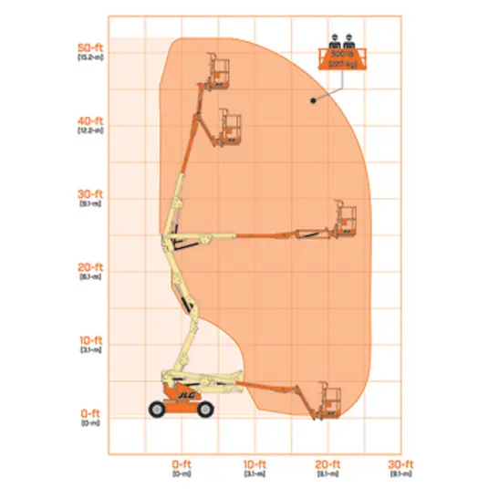 Vous recherchez une solution efficace et respectueuse de l’environnement pour le travail en hauteur en intérieur ou en extérieur ? Le télescope articulé JLG E450AJ combine une hauteur de travail de 15,72 mètres et une portée latérale impressionnante de 7,89 mètres, grâce à un moteur électrique silencieux et sans émissions. Il est idéal pour les environnements de travail où les émissions et le bruit doivent être réduits au minimum.