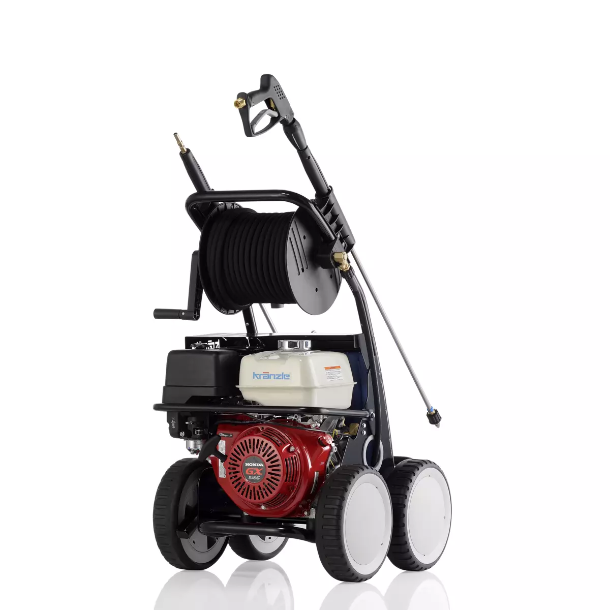 Location d’un nettoyeur haute pression à eau froide Kränzle B 230 T ? Puissant (30-200 bar), robuste et mobile avec tuyau de 20 m et lance Turbokiller. Idéal pour le nettoyage intensif de machines, véhicules, façades et installations industrielles.