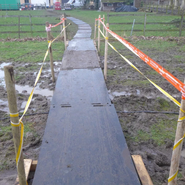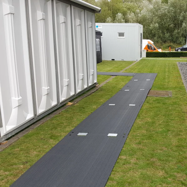 Les rampes en plastique avec poignées sont idéales pour renforcer temporairement les surfaces et protéger les routes, les terrains ou les pelouses. D’une capacité de charge de 45 tonnes, ces plaques conviennent aux véhicules et machines lourds. Mesurant 2000 x 1000 x 15 mm, elles offrent un passage stable et sûr. Les poignées intégrées facilitent le transport et la mise en place. Ces plaques sont idéales pour les événements, les chantiers et les travaux d’infrastructure.