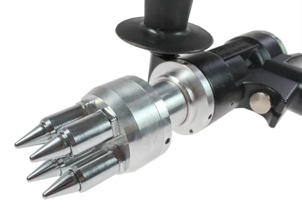 Pistolet pneumatique avec buse multijet pour une distribution large et régulière de l’air.