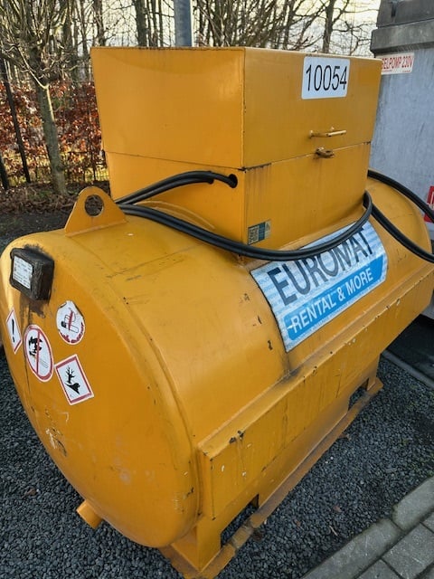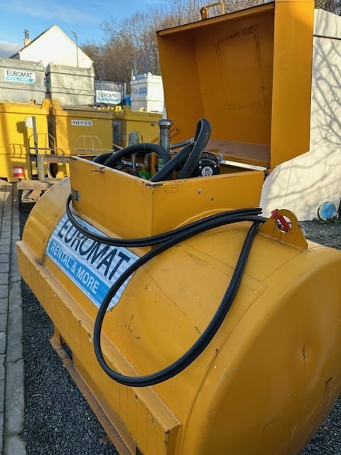 Robuuste 1200 liter brandstoftank voor veilige opslag en bevoorrading op de werf. Praktische en kostenefficiënte oplossing voor mobiele machines en stroomgroepen.